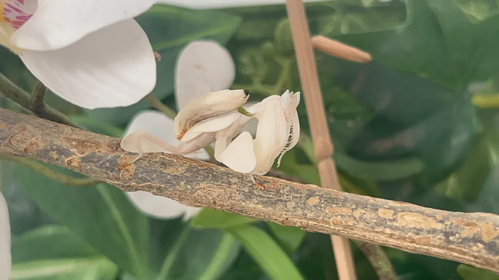 Where you can "forget" a Hierodula Transcaucasica for two or three days, don't even count on it with an orchid praying mantis. You'll have to check every day that it has eaten and that the humidity is within the prescribed range.