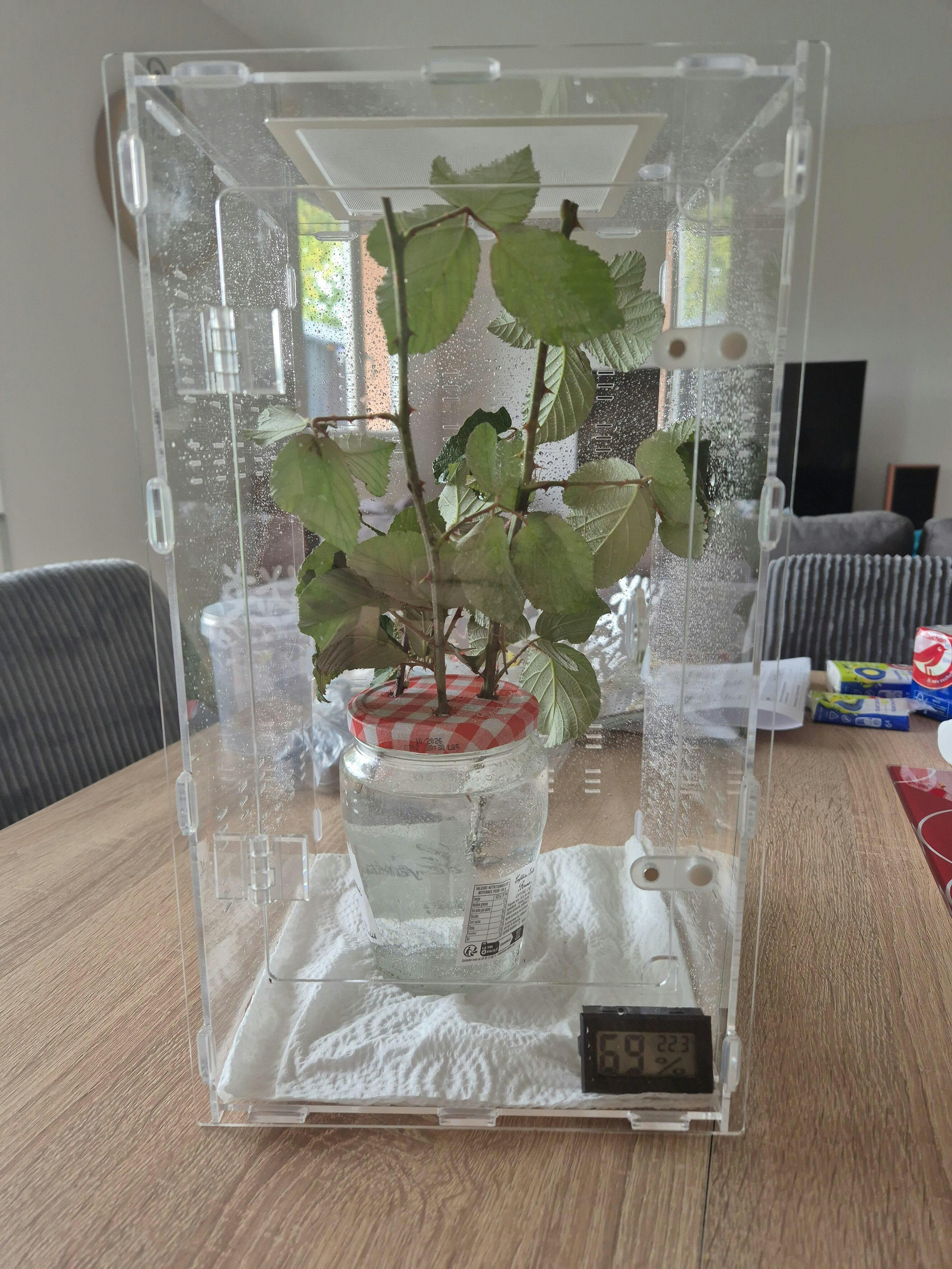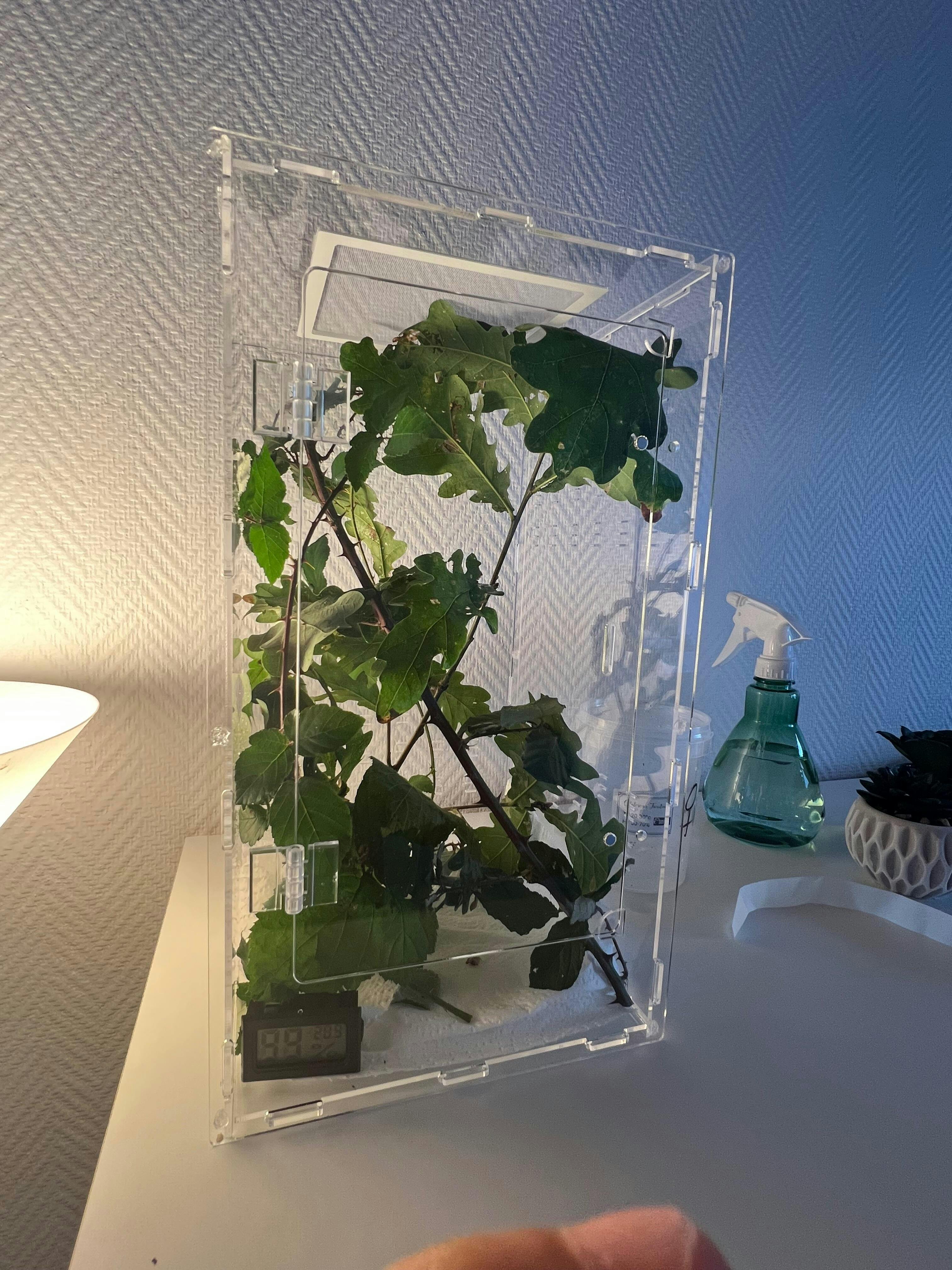 - Un terrarium acrylique exclusif 20x20x35 cm, conçu sur mesure pour les besoins spécifiques des phasmes.